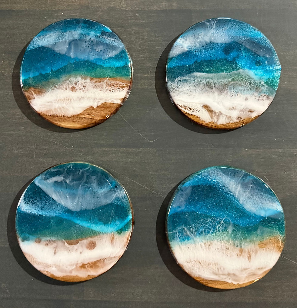 Ocean Resin Coaster Set – Real Sand (2 Round + 2 Square)