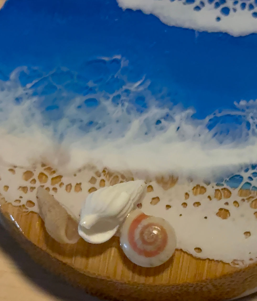 Acacia Wood Resin Ocean Resin Round Charcuterie Board – (12”)