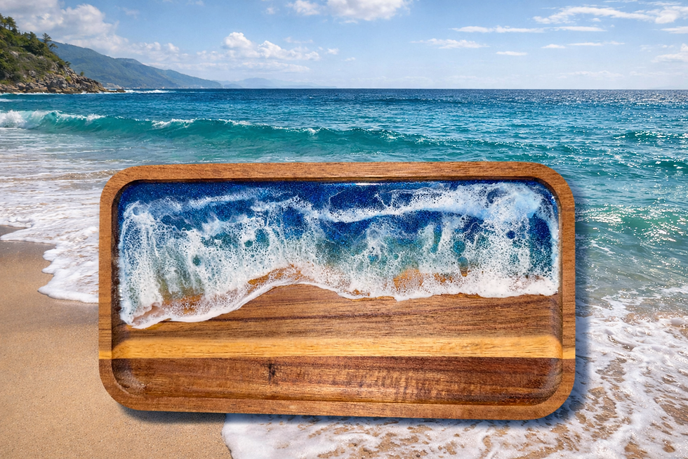 Perfectly sized for snacks, styled by the sea. Ocean resin boards made for small bites & big style.